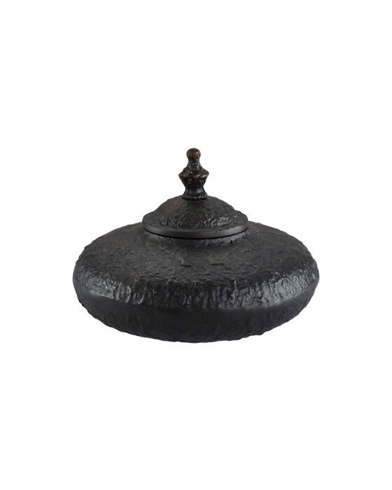 Den eleganta Fiora asken i svart är en vacker detalj till ditt hem eller kontor. Tillverkad i metall med en strukturerad yta, passar den perfekt för att förvara små föremål eller dekorera ditt rum.