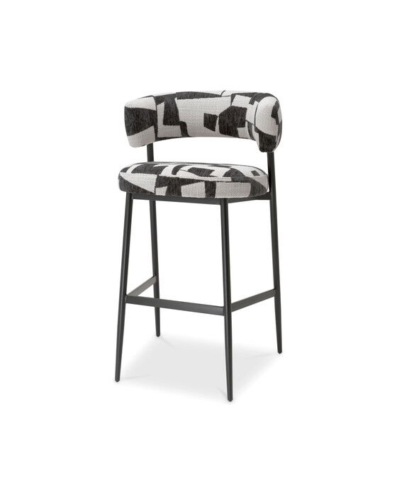 Discover the exclusive charm of the Bar Stool Folsom by Eichholtz. A signature piece blending modern sophistication with timeless craftsmanship. Upholstered in Brooklyn black fabric with a striking pattern, it boasts black metal legs for a robust finish. This artisan-crafted bar stool elevates any living space, seamlessly fitting into the Eichholtz collection of luxury interior design solutions.