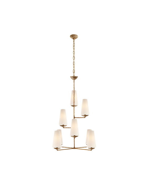 Fontaine från AERIN utsmyckar estetik från mitten av århundradet med en modern känsla. Skulpterat metallarbete i flera utsökta utföranden förhöjer mindre utrymmen medan de större lampor i serien ger en elegant fokuspunkt i en matsal eller vardagsrum. De koniska linneskärmarna ger vackra linjer och varm belysning i alla utrymmen, oavsett om de kommer från en vägglampa eller ljuskrona.