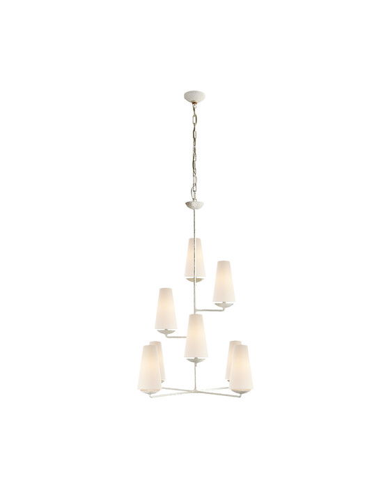 Fontaine från AERIN kombinerar estetik från mitten av århundradet med en modern känsla. Skulpterat metallarbete i flera utsökta utföranden förhöjer mindre utrymmen, medan de större lamporna i serien ger en elegant fokuspunkt i en matsal eller vardagsrum. De koniska linneskärmarna ger vackra linjer och varm belysning i alla utrymmen, oavsett om de kommer från en vägglampa eller ljuskrona.