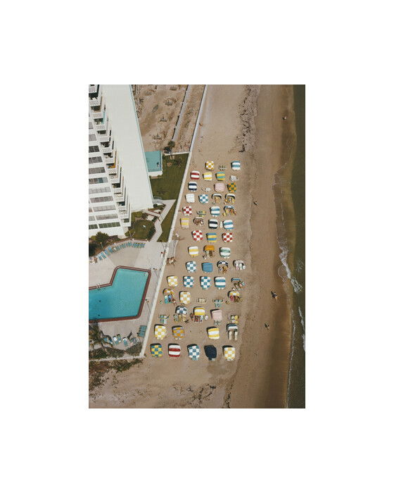 Upptäck en spektakulär vy över en strandort i Fort Lauderdale, Florida. Denna konstnärliga bild fångar en kustlinje i februari 1970 och är en del av Slim Aarons kollektion.