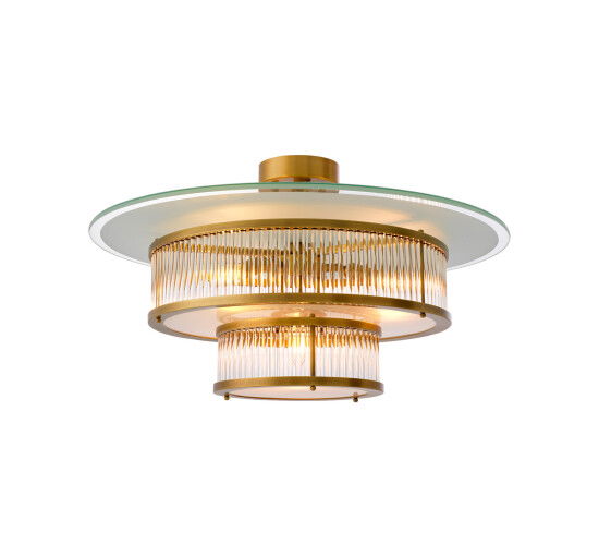Taklampan Frederic kombinerar antik mässing med klart och vitt glas för att skapa en elegant och harmonisk atmosfär i ditt hem. Med en kunglig touch lyser Frederic upp rummet med värme och lugn, vilket ger en exklusiv känsla till din inredning.