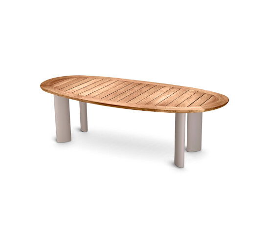 Free Form matbord är tillverkat av grade A teakträ från hållbart skötta skogar. Med sin unika fria form teakskiva och snygga aluminiumben ger detta bord en touch av sofistikering och naturlig skönhet till utomhusmatplatser. Bordet stödjer ansvarsfull skogsavverkning och är en miljövänlig och elegant tillskott till din utomhusmöbler.