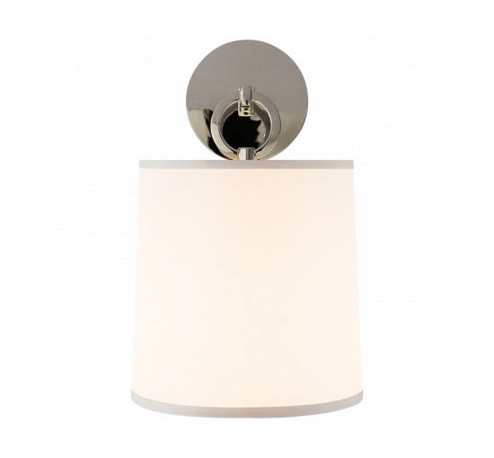 French Cuff Sconce in Polished Nickel with Silk Shade är en exklusiv vägglampa som passar perfekt i både moderna och klassiska miljöer. Denna outlet-vara är tillgänglig i begränsad kvantitet och kan ha mindre slitage eller repor.