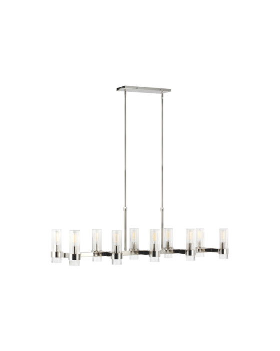 Geneva takkrona nickel från Visual Comfort har en modern och sofistikerad design med en polerad nickelfinish och eleganta, ribbade glasskärmar. Ljuskronans symmetriska form och stilrena linjer skapar en lyxig känsla, perfekt för att ge ett elegant intryck i matsalar, vardagsrum eller entréer.