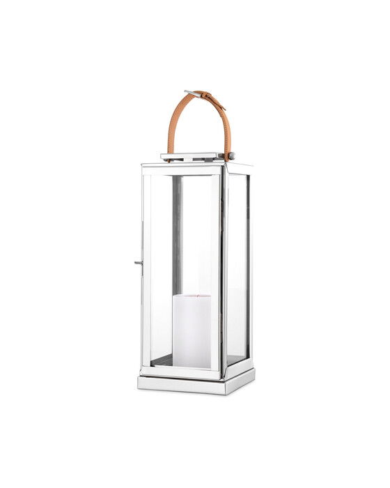 Skapa en varm och välkomnande atmosfär i ditt hem med lyktan Georgian från Eichholtz. Den här underbara lyktan kommer att bli ett vackert inslag i hemmet. Stilren design i nickelfinish med handtag av läder.