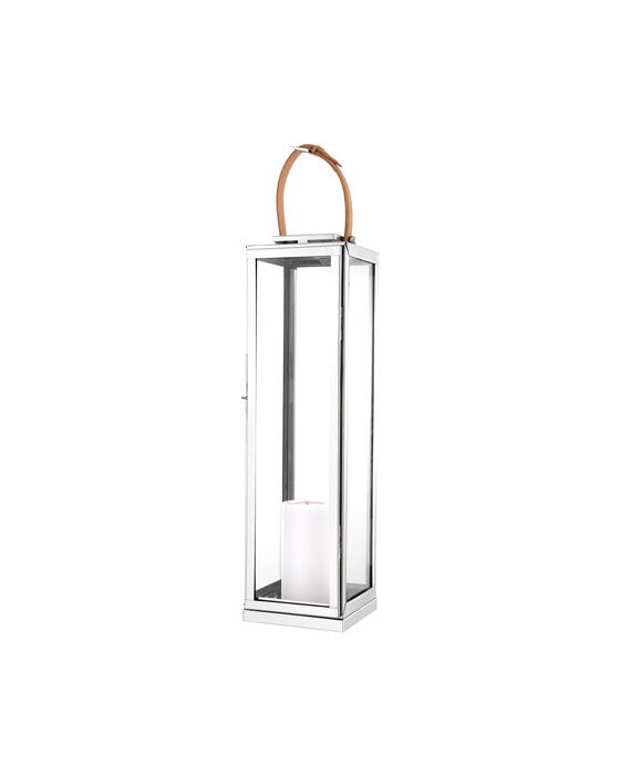 Skapa en varm och välkomnande atmosfär i ditt hem med lyktan Georgian från Eichholtz. Den här underbara lyktan kommer att bli ett vackert inslag i hemmet. Stilren design i nickelfinish med handtag av läder.