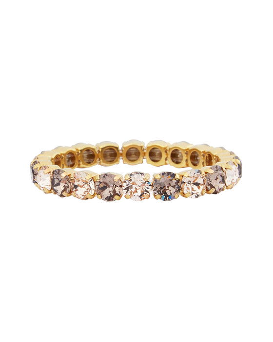 Det tidlösa och eleganta Gia Stud armbandet i greige/silk är perfekt för både vardag och fest. Tillverkat av kristaller och guldpläterad mässing är detta nickelfria stretch armband ett stilfullt tillskott till din smyckessamling. Handgjort av Caroline Svedbom och levereras i en signaturask.