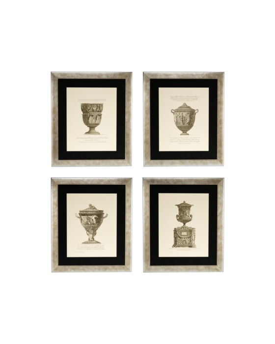 Utforska skönheten i dessa vackra tavlor i set om 4 med silverfärgad ram från varumärket Eichholtz. Med måtten 59×69 cm blir dessa konstverk en elegant touch i vilket rum som helst. Skapa en sofistikerad och stilfull atmosfär med Giovanni Battista.