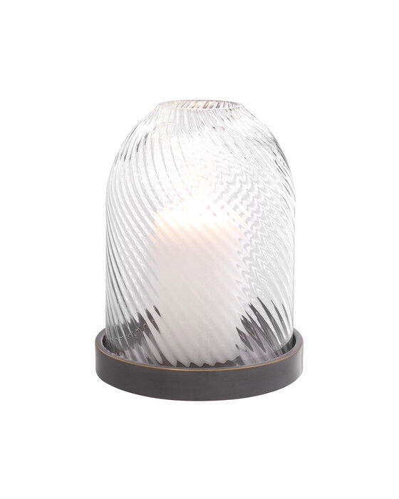 Den eleganta Giselle lyktan är tillverkad av handblåst glas med en bas i bronsfinish. Det vackra spiralmönstret i glaset avger ett behagligt sken som skapar en mysig atmosfär i hemmet.