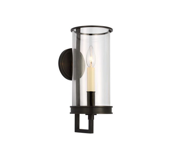Glendon vägglampa brons från Visual Comfort har en elegant och tidlös design med en cylindrisk glaskupa och en bronsfinish. Den klassiska formen på ljushållaren ger ett mjukt och stämningsfullt ljus, perfekt för att skapa en inbjudande atmosfär i hallar, vardagsrum eller matsalar.