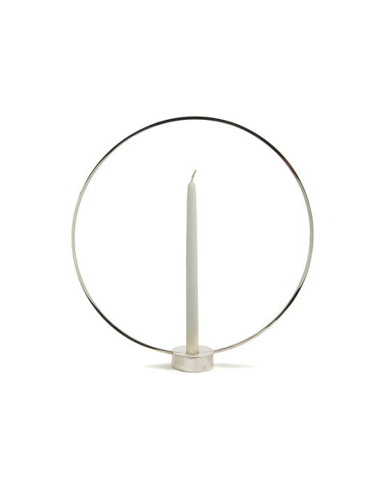 Gloria ljusstake i nickel från Klong är en storsäljare som har belönats med flera fina utmärkelser. Denna ljushållare är också en unik skulptur som skapar en vacker atmosfär i rummet. En elegant cirkel i nickel markerar centrum för ett stearinljus, vilket ger en effekt av energi när ljuset är tänd och fungerar som en dekorativ markör när ljuset är släckt. Med tillägget av Flora glasinsats, designad av Axel Bjurström, kan ljusstaken även användas som en vacker vas. Skötselråd: Putsa regelbundet eftersom ljusstaken är tillverkad i nickel och undvik fukt på den skyddande filten på undersidan för att förhindra färgavtryck.