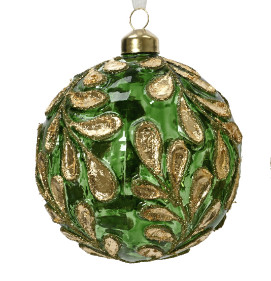 Skapa en magisk julstämning med dessa exklusiva julkulor med gyllene blad och glittrande grenar. Det detaljrika mönstret sprider ett förtrollande skimmer som ger granen en lyxig och festlig känsla.