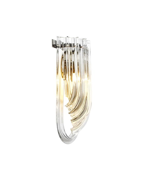 Greco vägglampa är en elegant och stilren vägglampa med en nickel finish och klart glas. Med måtten A. 18 cm, B. 10 cm och C. 40 cm passar den perfekt för att lysa upp ditt rum.