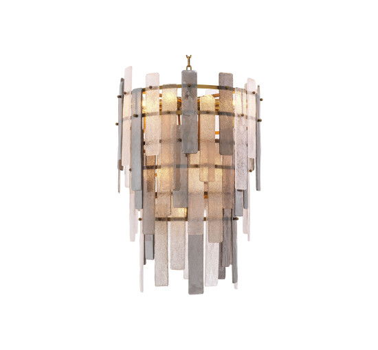 Greyson takkrona har en avsmalnande ram med en vacker antik mässingsfinish. Trimmad med remsor av handgjort glas i olika färger och längder skapar denna moderna takkrona en lyxig vintagekänsla. Den kommer att ge en trevlig och mysig belysning i ditt hem.