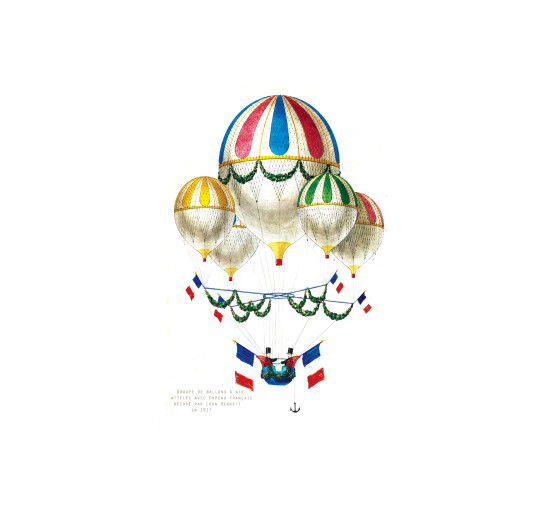 Denna unika tavla från 1917 visar en elegant luftballongsformation dekorerad med franska flaggor och grönskande girlander. Designen av Léon Bennett förmedlar en känsla av stolthet och historisk charm, perfekt för den som uppskattar fransk kultur och romantik.