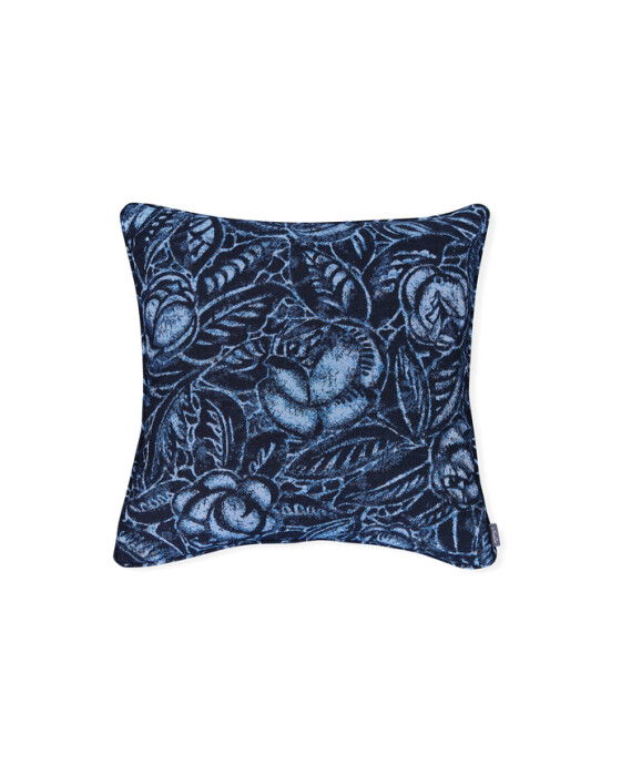 Det vackra Hacienda Floral kuddfodralet har ett djärvt blomstermönster i mörk marinblå kulör och tillverkat av 100% Sunbrella-tyg. Med tyger från Ralph Lauren Home är detta kuddfodral perfekt för utomhusbruk tack vare dess motståndskraft mot väta och solblekning.
