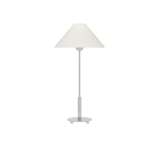 Visual Comforts Hackney 24″ bordslampa i nickel erbjuder en elegant och minimalistisk design med trådlös flexibilitet. Den slanka lampfoten och den konformade vita lampskärmen sprider ett behagligt ljus, perfekt för buffébord, sidobord eller fönsterbrädor.