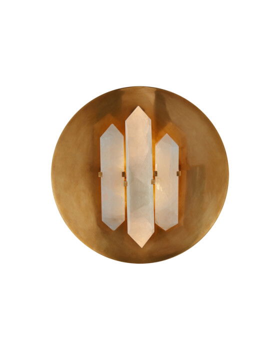 Halcyon vägglampa rund antik mässing från Visual Comfort är en del av den eleganta Halcyon-serien, designad av Kelly Wearstler. Den kombinerar åldrad mässing med organiska material såsom svart marmor, alabaster, kristall och naturlig kvarts för att ge en distinkt elegans till ditt hem.