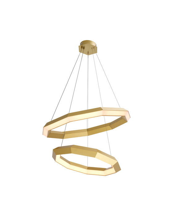 Helvetia taklampa mässing beskrivs med två ord, extraordinär och majestätisk. Taklampan består av två metalliska nio-sidiga polygoner med LED-lampor och har en fin finish i antik mässing. Den övre ringen lyser utåt och den nedre lyser inåt, vilket ger ett skönt men ändå starkt ljus och skapar en livlig atmosfär i rummet.