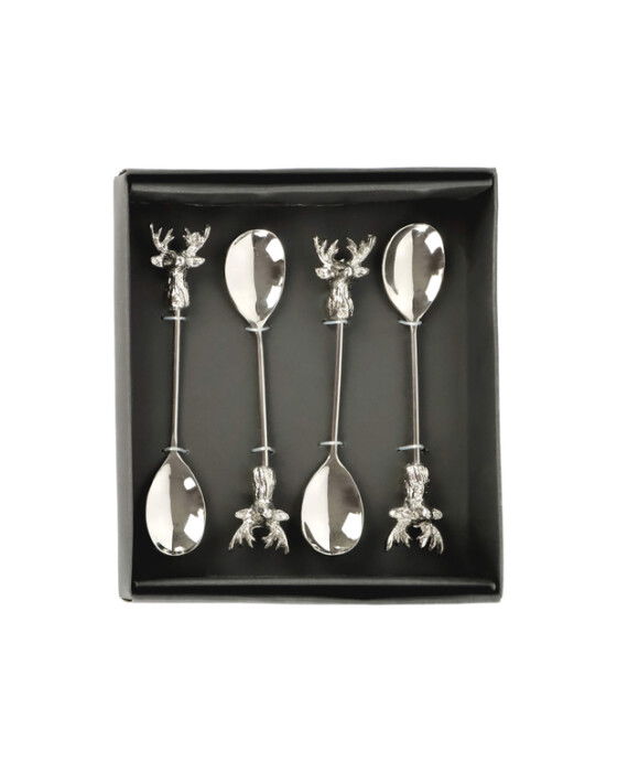 Dessa hjort teskedar i 4-pack är tillverkade av högkvalitativt nickel och har en charmig hjort på toppen som ger dem en unik charm. Med en längd på cirka 13,5 cm är de perfekta för att njuta av en mysig stund med te, varm choklad eller kaffe med stil. Deras eleganta design och högkvalitativa utförande gör dem till ett stilfullt tillskott till vilket bord som helst.