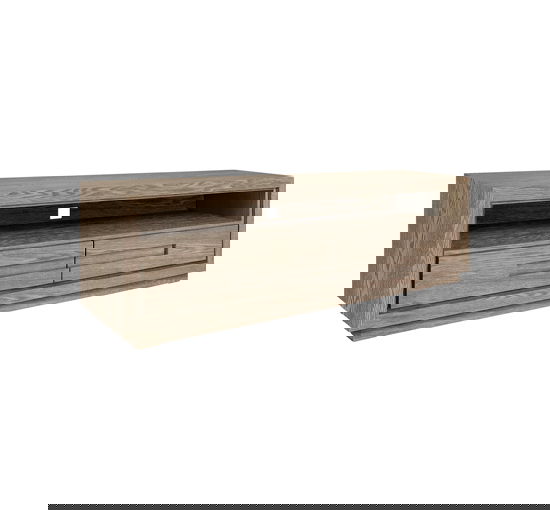 En stilfull och gedigen mediabänk i antikgrå från Artwood tillverkad av MDF och ek. Denna eleganta mediabänk är utrustad med två praktiska och rymliga förvaringslådor som passar perfekt i ditt vardagsrum.