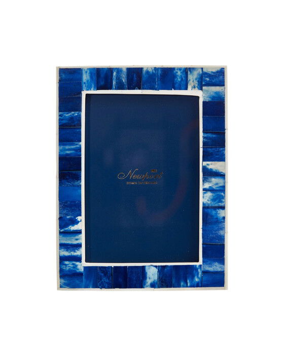 Hyperion är en stilfull fotoram i indigoblått och vitt, inspirerad av Medelhavsländernas charmiga miljöer. Tillverkad av naturligt material med ett dekorativt mosaikmönster som ger en levande och elegant touch till ditt hem.