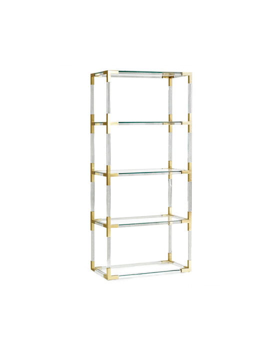 Jacques bokhylla är en perfekt balans mellan enkelhet och glamour, med en modern och traditionell design. Den är idealisk för att visa upp personliga tillhörigheter, inredning, böcker och blommor. Med sin eleganta akryl och varma mässingsdetaljer passar Jacques in i alla typer av inredningsstilar, från minimalistiskt till maximalistiskt.