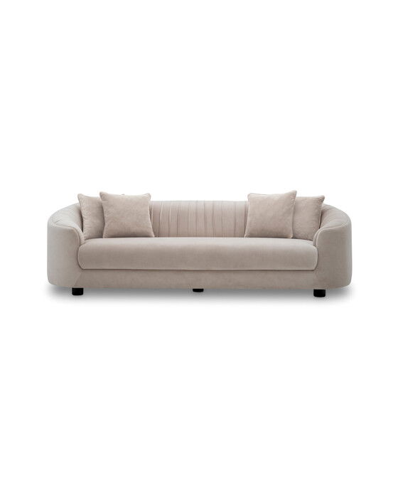 Upplev soffan Jameson i Amaro cream, klädd i ett mjukt och ljust tyg som förenar komfort med stil. De smäckra svarta benen ger en modern känsla och gör soffan till en utmärkande möbel som kombinerar elegans och hållbarhet med självklar charm.