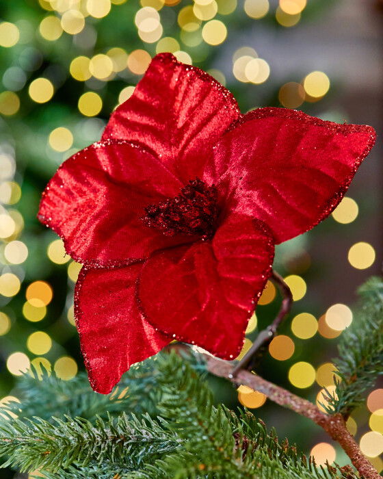Ge julen det lilla extra med Josephine dekorationsblomma i tyg. Den passar perfekt att placera i granen eller på det dukade julbordet. Blomman fästs med en klämma undertill.
