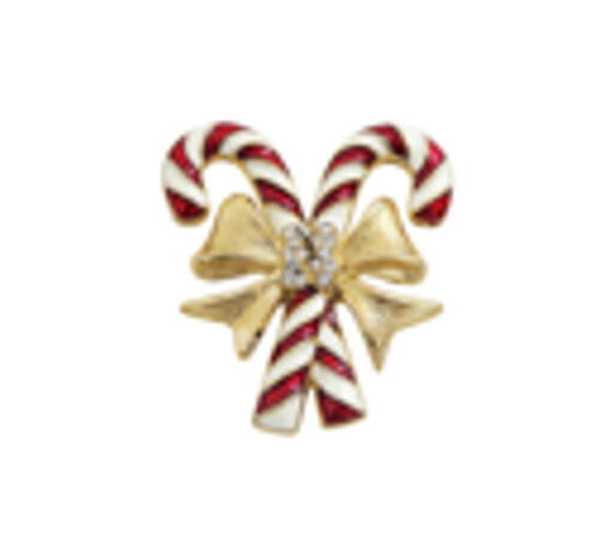Denna festliga brosch i form av två polkagriskäppar prydda med en gnistrande rosett sprider julglädje och ger din outfit en lekfull och elegant känsla. Den blir ett glittrande blickfång på julfesten och andra högtidliga tillfällen, och låter dig bära med dig en liten bit av julens magi vart du än går. Observera att asken ej ingår.