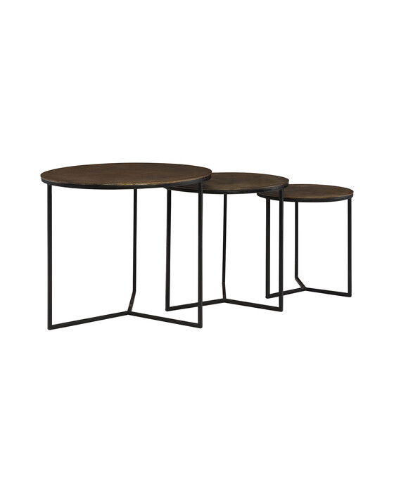 Juno sidobord i set om tre från Artwood i mässingsfärgad aluminium och järn är en stilren och praktisk möbel som passar perfekt in i både moderna och klassiska inredningar. Med sina mått på ø 60/49/38 x h 52/47/40 cm är detta sidobord en mångsidig möbel som både kan användas som ett set eller var för sig.