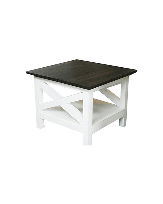 Justin sidobord lodge top är tillverkat i vit målad furu med brun top, perfekt för att ge en rustik touch till ditt hem. Det passar utmärkt som ett sidobord bredvid din favoritfåtölj eller soffa.