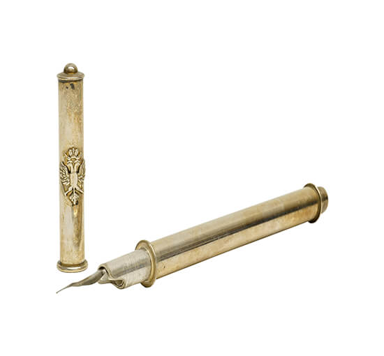 Det eleganta kalligrafiset är en hyllning till skrivkonstens tidlösa skönhet. Med sin gyllene penna presenterad i en sofistikerad ram blir det både ett praktiskt verktyg och ett dekorativt konstföremål. Setet för tankarna till en tid då varje skriven rad var ett konstverk och då handens rörelse på papperet bar på samma betydelse som orden i sig.