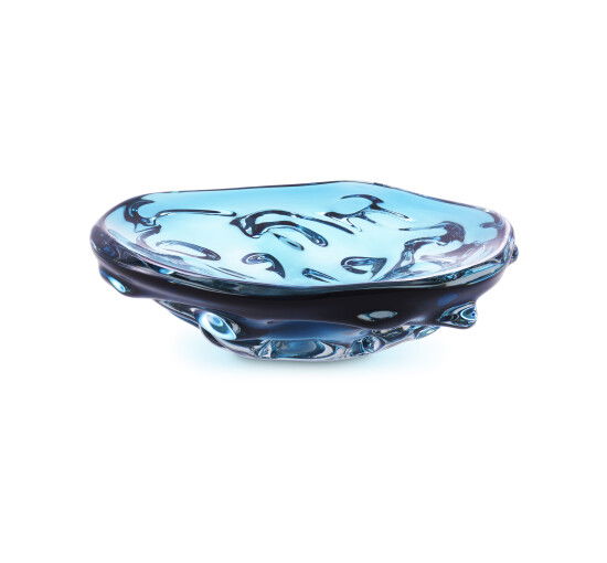 Den lilla Kane-skålen har en intressant organisk form och en djupblå färg och är tillverkad av handblåst glas. Det som gör denna konstfulla hemtillbehör extraordinär är dess skulpturala utseende och det faktum att varje skål är helt unik eftersom det är en handgjord produkt.