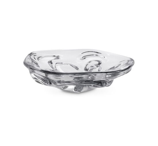 Den lilla Kane-skålen har en intressant organisk form och är tillverkad av handblåst klarglas. Det som gör denna konstfulla heminredning så speciell är dess skulpturala utseende och det faktum att varje skål är helt unik eftersom det är en handgjord produkt.