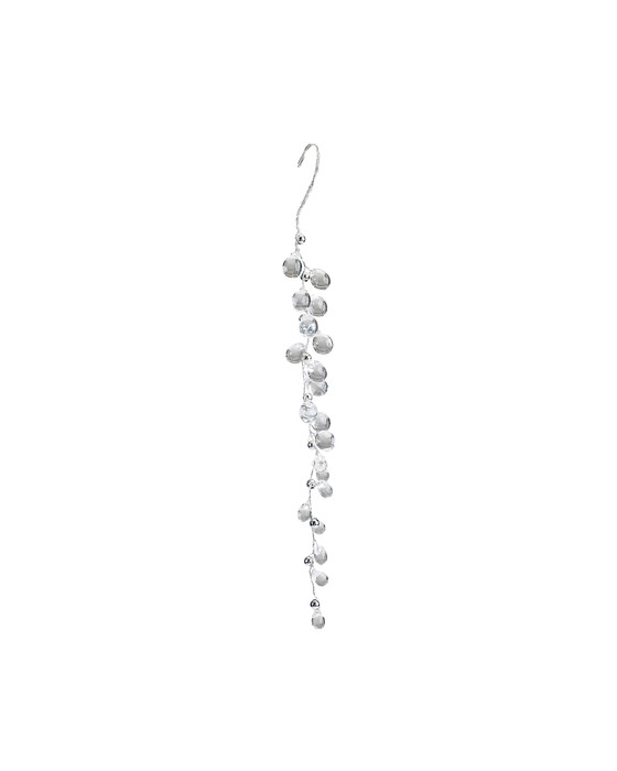 En vacker och dekorativ julgransdekoration i silver med detaljer i transparent akryl föreställande vattendroppar. De glittrande vattendropparna fångar ljuset och skapar en magisk julstämning.