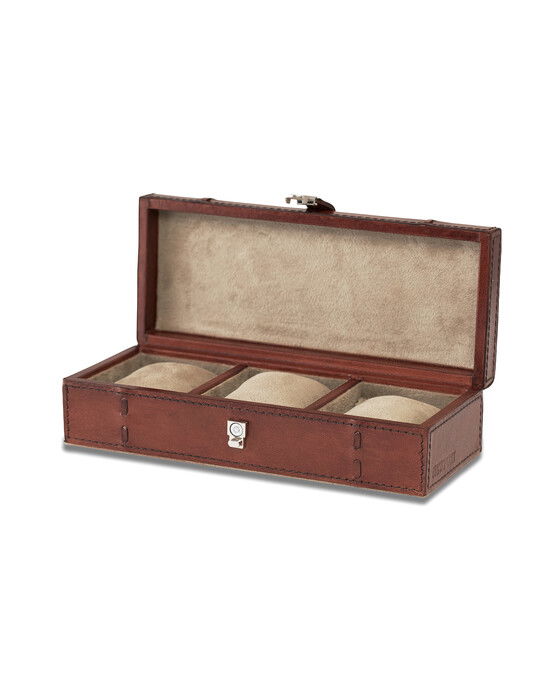 Förvara dina armbandsur i en elegant box där de både hålls säkra samt kan visas upp i hylla eller på skrivbord. Boxen är tillverkad av läder och har ett mjukt, skonsamt tyg på insidan som motverkar repor och slitage på klockorna. Produkten ingår i Kensington Collection som är en hyllning till det traditionella brittiska läderhantverket. Ett exklusivt sortiment av äkta läder i en djupt brun nyans som lyfter fram lädrets skönhet och integritet på ett elegant sätt.