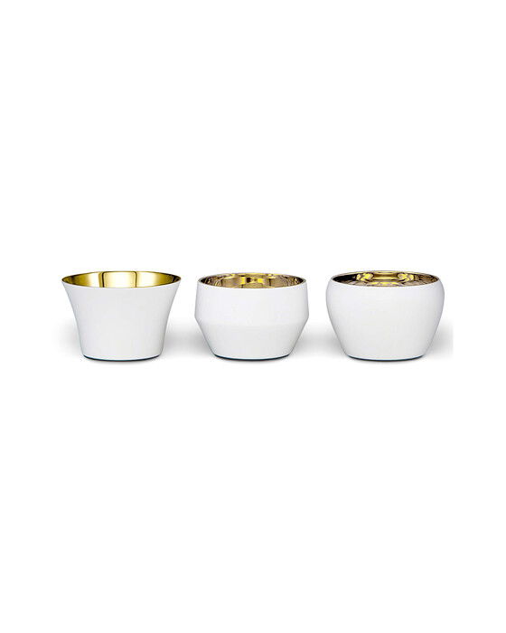 Kin är en serie ljushållare designade av Claesson Koivisto Rune år 2010. Denna modell har en vit pulverlackad utsida och en blankpolerad mässingsinsida. Setet inkluderar tre vita ljuslyktor som levereras i ett elegant etui.