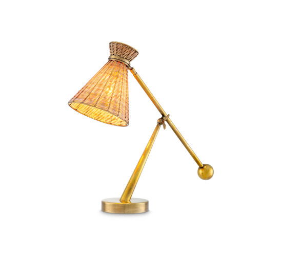 Ge ditt hem en touch av enkel sofistikation med Kon Tiki bordslampa. En unik kombination av midcenturydesign och globala influenser skapar en harmonisk balans mellan modern elegans och klassisk känsla. Med en tidlös lampskärm i naturligt rotting och en fot i vintage-mässing finish, sprider Kon Tiki ett varmt och stämningsfullt sken i alla rum.