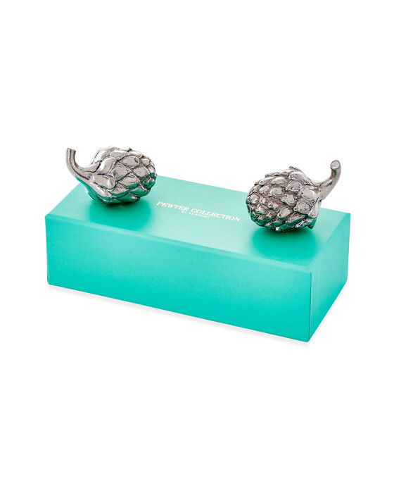 Den eleganta salt- och pepparkaren från Newport är tillverkad av tenn med motiv av två vackra kronärtskockor. Denna detalj gör den till en perfekt dekoration för middagsbordet och ett stilfullt komplement till dukningen.