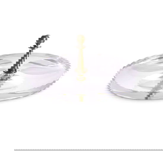 Den exklusiva Krone brickan i mässing är en dekorativ och praktiskt tillbehör till ditt hem. Tillverkad i massivt glas med ett stilfullt handtag av mässing, denna bricka kommer att ge en touch av elegans till din inredning.