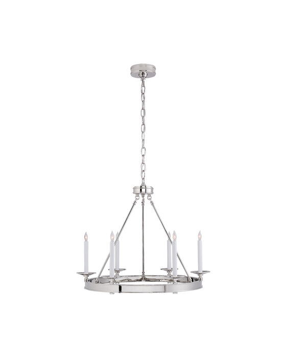 Launceton Small Ring Chandelier in Polished Nickel är en stilfull takkrona som ger ett elegant och modernt uttryck till ditt hem. Med en bredd på 68,6 cm och en höjd på 55,9 cm passar den perfekt i både vardagsrummet och matsalen.
