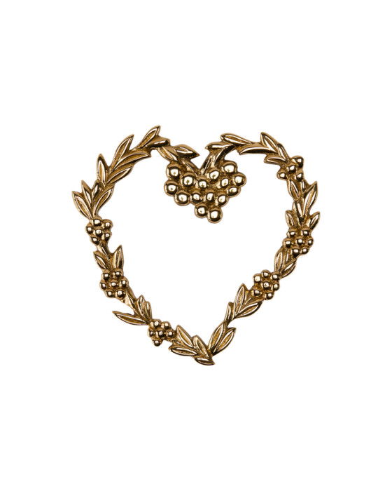 Det högglansiga grytunderlägget Leaf & Berry i polerad mässing är handtillverkat och unikt med eventuella ojämnheter. Det kan användas som ett vackert grytunderlägg, dekorativt element på bordet eller som inredningsdetalj i köket.