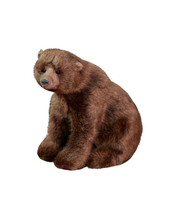 Denna dekorativa björn tillför värme och karaktär till hemmets inredning med sitt naturtrogna uttryck och mjuka struktur. Den skapar en stämningsfull atmosfär som passar perfekt som en sofistikerad juldekoration. Placera den på ett bord, i en hylla eller som en del av ett elegant jularrangemang för en exklusiv känsla i hemmet.