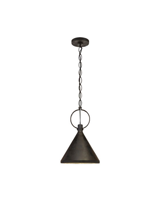 Limoges-serien av Suzanne Kasler kombinerar industri med finess och ger en gammaldags glöd som påminner om Paris på natten. Denna takpendel finns i naturligt rostfärgad eller svart åldrat järn med koniska skärmar i vitt eller klarglas för en modern touch i köket eller entrén.