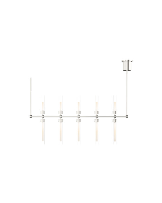 Den Linger 48″ taklampan linjär av designern Sean Lavin är ett stilrent och elegant belysningsval som passar perfekt i större utrymmen som matsalar, kök och entréer. Med tio LED-lampor i glas- och akrylcylindrar ger denna pendellampa generös belysning både uppåt och nedåt.