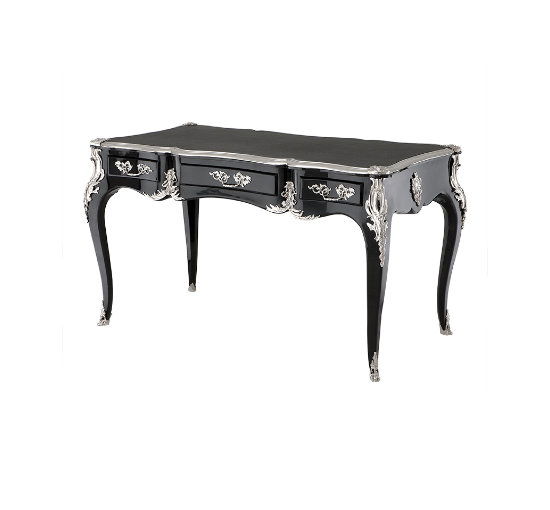 Ett unikt skrivbord från Eichholtz som tar dig tillbaka i tiden med sin antika stil och pianosvarta finish. Med vackra detaljer i polerad aluminium och en läderliknande bordsskiva blir detta skrivbord en iögonfallande originalpjäs till ditt arbetsrum, hemmakontor eller sovrum. Observera att denna outlet-vara finns i begränsad kvantitet och kan ha mindre slitage eller repor.
