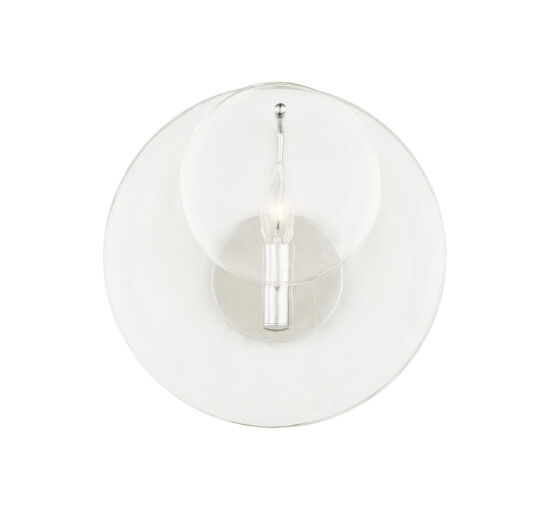 Loire vägglampa i nickel och klarglas från Visual Comfort är en elegant och modern lampa med inspiration från mitten av 1900-talet. Den böljande siluetten och det mjuka ljuset genom handblåsta skivor i vitt strié-glas skapar en distinkt atmosfär i rummet.