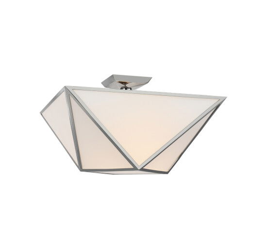 Lorino plafond nickel är en elegant taklampa designad av Julie Neill som inspirerats av facetterade former hos ädelstenar. Med sina synkoperade trianglar och metallramar med glaspaneler skapar denna armatur en dynamisk och stilren look som passar perfekt i olika utrymmen.